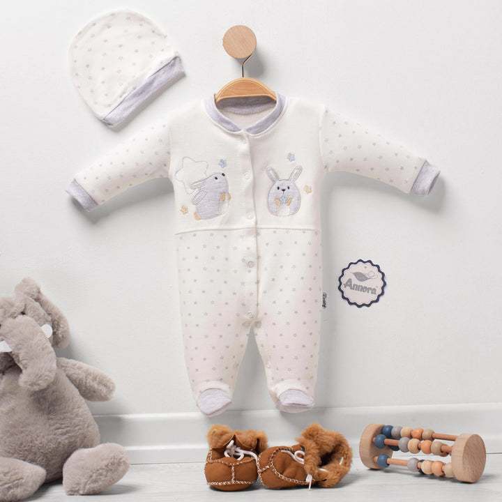 Cette barboteuse pour bébé, qui offre du confort avec sa texture douce adaptée à la peau délicate de votre bébé, est fabriquée en tissu 100% coton. Le tissu 36/1 tissé à partir de fils de haute qualité offre une utilisation durable grâce à sa durabilité.