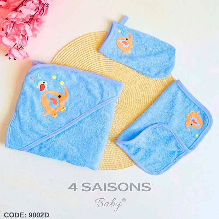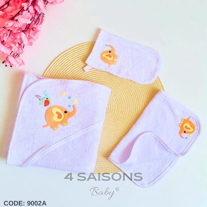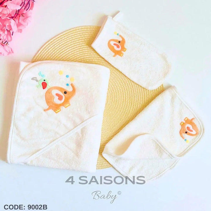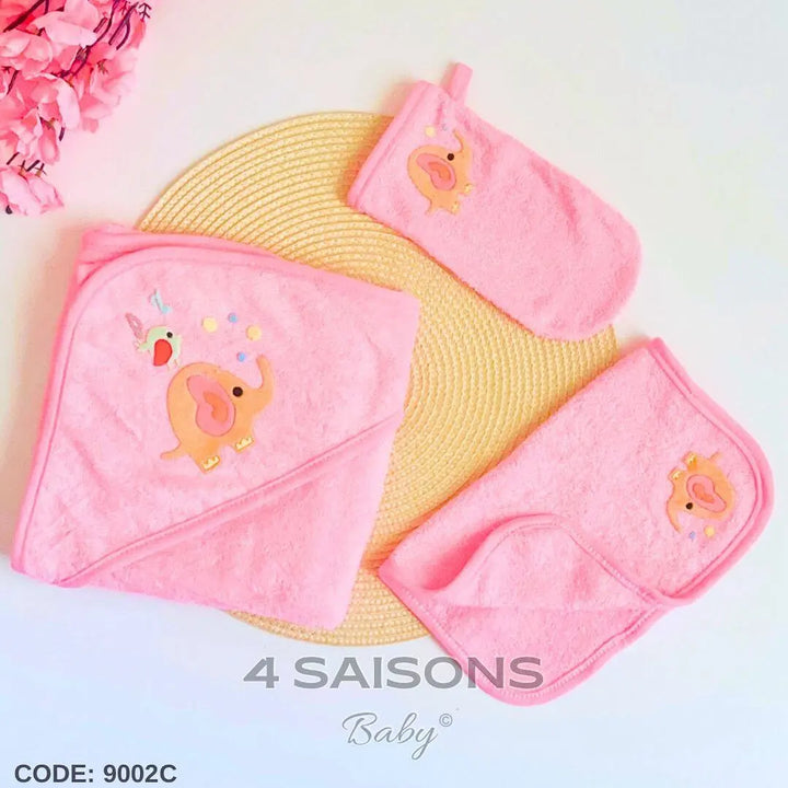 Cape De Bain 3 pièces Pour Bébé Coton Éléphant Garçon Bleu Rose Blanc Beige 70×70 Cm