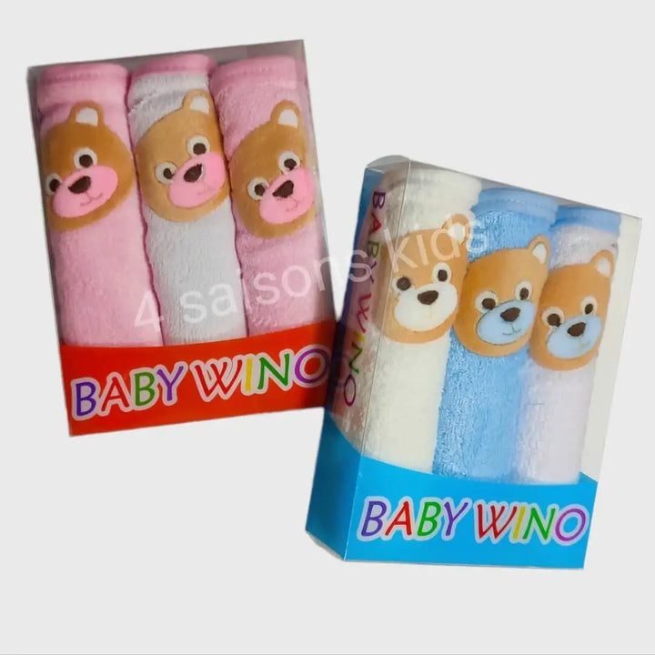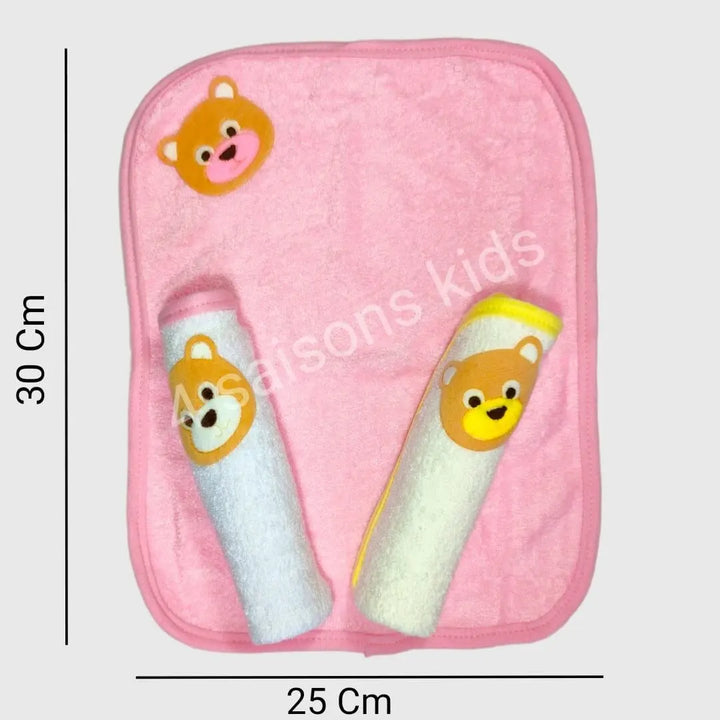 Lot De 3 Serviettes De Toilette Pour Bébé Ours Fille Garçon Bleu Rose 30×25 Cm