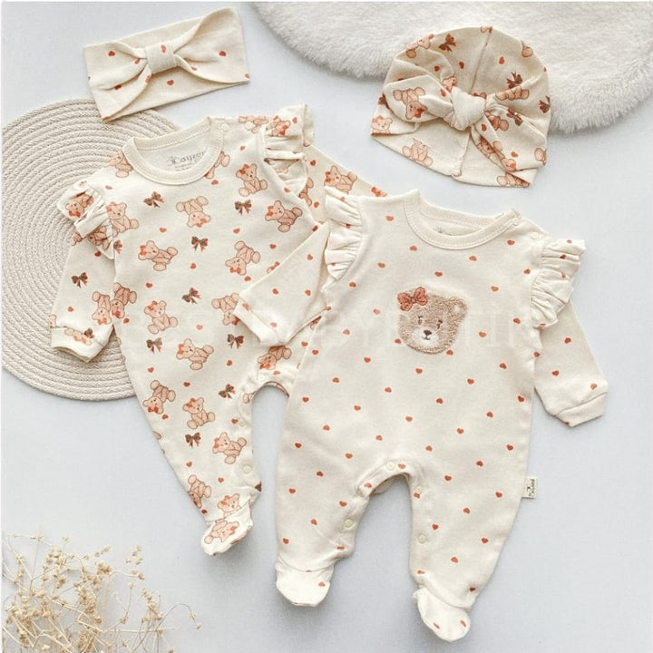 Pack Duo 2 En 1 Barboteuses Double 4 Pièces 100% Coton Fille de 0 à 6 Mois